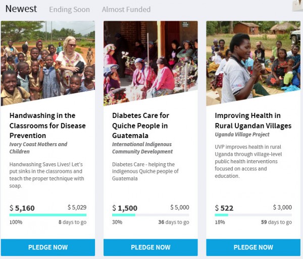Among the projects currently on the website, one is seeking $30,000 to provide emergency care doctors in Uganda. One initiative that’s met its funding goal is providing handwashing facilities in classrooms in the Ivory Coast to reduce transmission of infectious diseases. Another will provide an ultrasound unit in a community in Congo to improve maternity care.